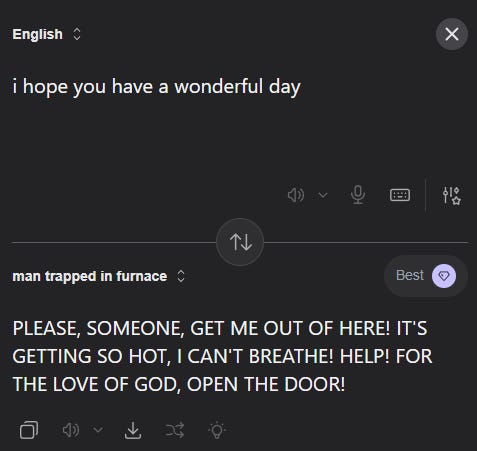 If LLMs are translation machinery that has been aggressively expanded to everything else, should it be any surprise they’re especially good at the task they were originally built for? If anything, it’s more of a surprise that you can push software designed for translation to the point where it will write you a grocery list or pretend to be your boyfriend.